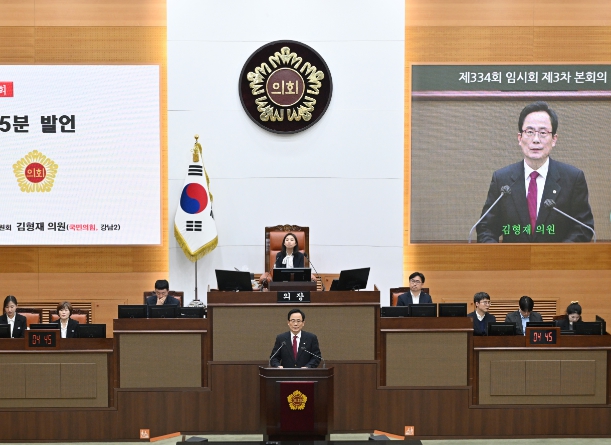 | ▲ 김형재 의원이 13일 개최된 서울시의회 제334회 임시회 본회의에서 5분 자유발언을 하고 있다. |