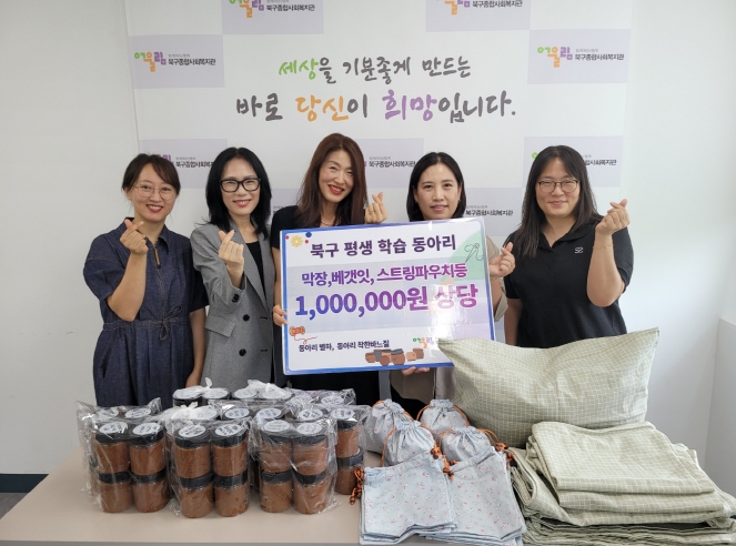[파이낸셜경제=김예빈 기자] 울산 북구 평생학습관 학습동아리 '별하'와 '착한 바느질'이 26일 북구종합사회복지관에 전통장과 바느질 물품을 기부했다.