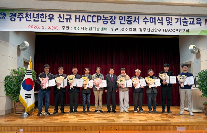 시는 ‘경주천년한우’를 사육하는 지역 한우농가 진우농장 등 10개 농가가 식품안전관리인증(HACCP)을 새롭게 획득했다고 8일 밝혔다.