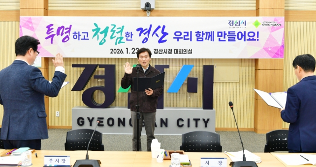 [파이낸셜경제=김지훈 기자] 경산시는 23일 경산시청 대회의실에서 2026년 간부 공무원 반부패·청렴실천 결의대회를 개최했다.