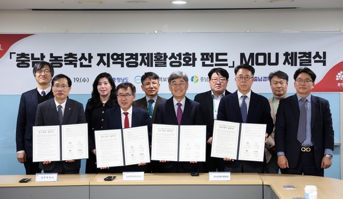 [파이낸셜경제=김영란 기자] 충남도는 19일 도청에서 농업정책보험금융원, 충남테크노파크, 충남경제진흥원과 ‘충남 농축산 지역경제 활성화 펀드’ 업무협약(MOU)을 체결했다.