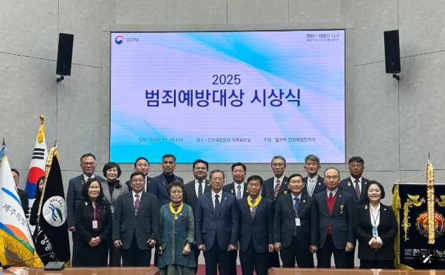 [파이낸셜경제=김영란 기자] 제주특별자치도가 도민 참여형 범죄예방 정책의 우수성을 인정받아 법무부 주관 ‘2025 범죄예방대상’ 국무총리 표창을 19일 받았다.