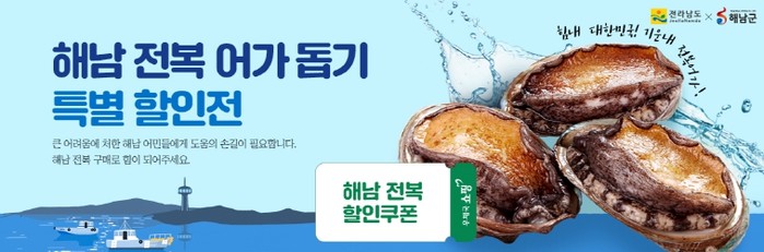 [파이낸셜경제=김예빈 기자] 전남지방우정청은 전라남도·해남군과 함께 해남전복 온라인 상품 판매 촉진을 위해 우체국쇼핑'해남전복 어가 돕기 특별전'을 추진한다고 11일 밝혔다.