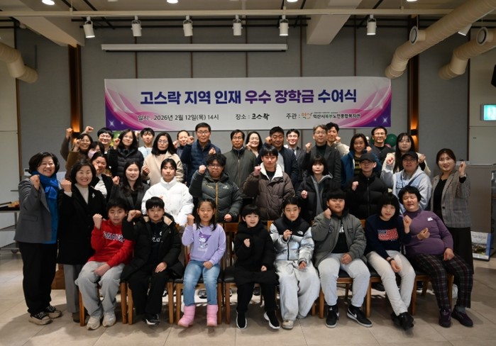 익산시북부노인종합복지관은 12일 고스락에서 '2026년 지역 인재 우수장학금 수여식'을 열고 학생들에게 장학금을 전달했다. 장학금은 고스락의 후원으로 마련됐으며 총 520만 원 규모다.