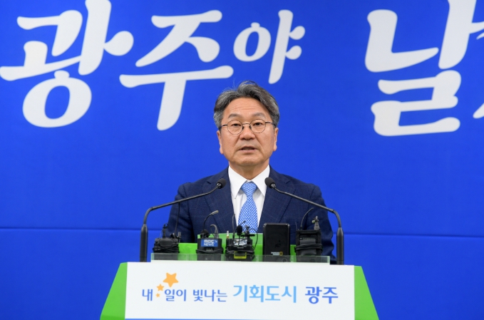 | ▲ 강기정 광주광역시장이 13일 시청 브리핑룸에서 ‘국정과제 반영 성과 브리핑’을 하고 있다./광주광역시 제공 |