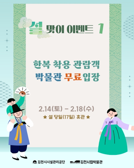 [파이낸셜경제=김지훈 기자] 김천시시설관리공단(이사장 김재광)은 2026년 설 명절을 맞아 감문국이야기나라와 김천시립박물관을 중심으로 가족 단위 관람객이 함께 즐길 수 있는 ‘설맞이 문화 행사’를 운영한다. 이번 행사는 2월 14일부터 2월 18일까지 진행된다.