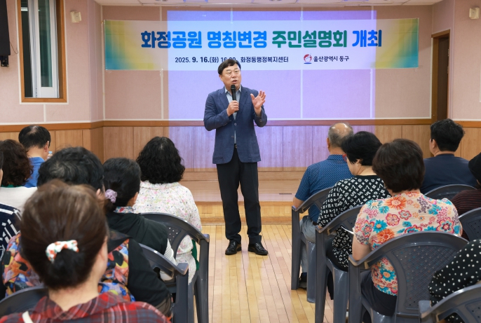[파이낸셜경제=김예빈 기자] 울산 동구는 9월 16일 오후 4시 30분 화정동행정복지센터 다목적실에서 주민 70명이 참여한 가운데, 화정공원 명칭 변경 사업에 대한 주민설명회를 개최했다.