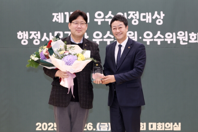 '우수의정대상'은 대한민국시도의회의장협의회가 매년 전국 광역의회의원을 대상으로, 주민참여 확대, 조례 제정, 지역현안 해결, 의정발전 기여도 등을 종합 평가해 시상하는 권위 있는 상이며, 김 의원은 2025년 한 해 동안 예산 감시, 공공기관 운영 점검, 도민 생활 밀착형 정책 제안 등 전방위 의정활동의 성과를 높이 평가받은 결과로 알려졌다.