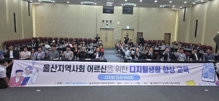 [파이낸셜경제=김예빈 기자] 남구주민자치위원협의회(회장 김태현)와 울산청년회의소(회장 손문호)는 22일 남구청 6층 대강당에서 어르신들을 위한 ‘디지털 역량강화 교육’을 열어 큰 호응을 얻었다.