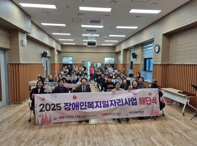 [파이낸셜경제=김기보 기자] 옥천군장애인복지관이 3일 일자리 참여자의 한 해 동안의 노고를 격려하고 근로 의욕을 높이기 위해 ‘2025년도 장애인복지일자리사업 해단식’을 개최했다.