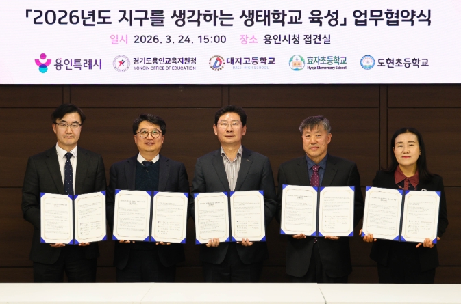 [파이낸셜경제=김기보 기자] 용인특례시는 24일 시청 접견실에서 용인교육지원청을 비롯해 3개 학교와 ‘지구를 생각하는 생태학교 육성사업’을 위한 협약을 맺었다.