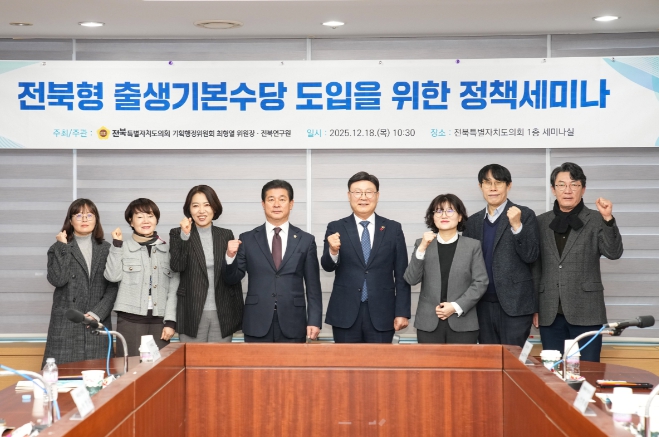 [파이낸셜경제=김예빈 기자] 전북특별자치도의회 기획행정위원회 최형열 위원장(전주5)은 18일 도의회 세미나실에서 ‘전북형 출생기본수당 도입을 위한 정책세미나’를 개최했다.