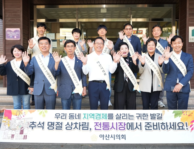 아산시의회는 매년 명절을 앞두고 전통시장을 찾아 상인들을 격려하고 시민들에게 전통시장 이용을 권장하며, 지역경제 활성화에 힘쓰고 있다.