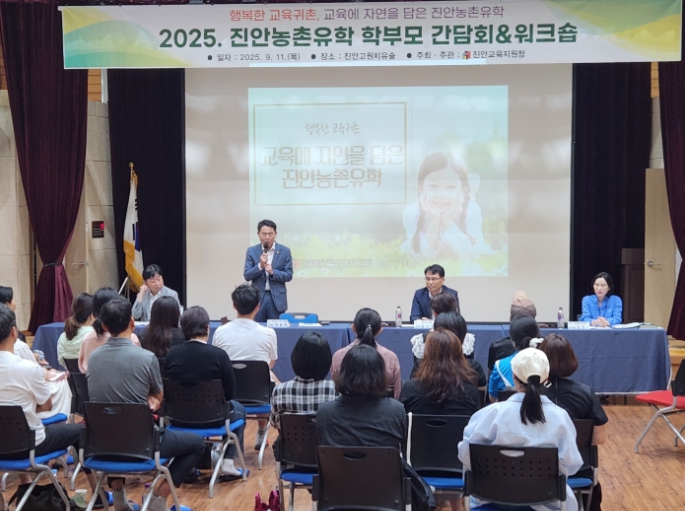[파이낸셜경제=김예빈 기자] 전북특별자치도의회 교육위원회 전용태 의원은 2025년 9월 11일 진안고원 치유숲 세미나실에서 열린 ‘2025 진안농촌유학 학부모 간담회’에 참석해 학부모들과 직접 소통하며 농촌유학 정책의 방향성을 함께 모색했다.