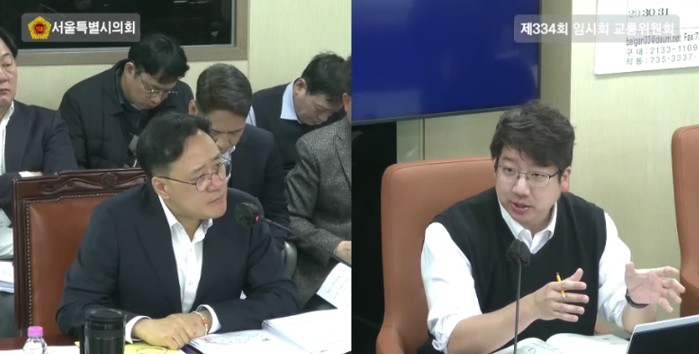 | ▲ 질의 중인 문성호 서울시의원의 모습. 왼쪽이 임춘근 서울 도시기반본부 본부장 |