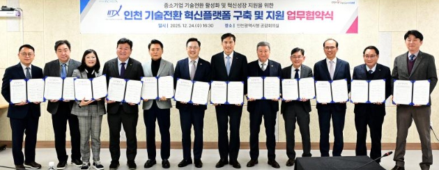 인천시는 중소기업의 기술혁신과 기술전환을 체계적으로 지원하기 위해 기술보증기금, 인천테크노파크, 인천지식재산센터, 8개 중소기업 협·단체와 함께 ‘중소기업 기술전환 혁신플랫폼 구축 및 지원을 위한 업무협약’을 12월 24일 체결했다.