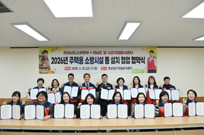 [파이낸셜경제=김예빈 기자] 경상남도 소방본부는 20일 오전 11시 경상남도자원봉사센터와 도내 18개 시군 자원봉사센터가 참여한 가운데 주택용 소방시설 보급 협력을 위한 업무협약을 체결했다고 밝혔다.