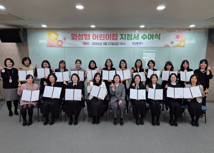 [파이낸셜경제=김기보 기자] 화성특례시는 민간·가정 어린이집의 공공성과 전문성을 강화하기 위한 ‘화성형어린이집’ 20개소를 선정하고 20일 지정서 수여식을 마쳤다. 화성특례시는 지난 2022년부터 보육 서비스의 질을 높이고자 화성형어린이집을 선정해 지원을 이어오고 있다.