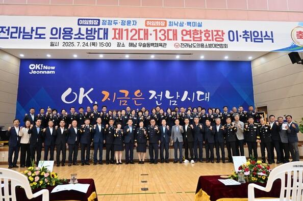 [파이낸셜경제=김예빈 기자] 해남소방서는 24일 해남군 우슬동백체육관에서 제12·13대 의용소방대연합회 연합회장 이·취임식 행사를 개최했다.