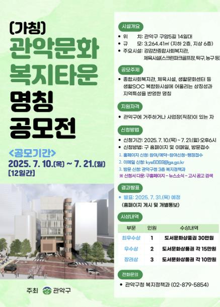 | ▲ 관악문화복지타운(가칭) 명칭 공모전 홍보 포스터 |