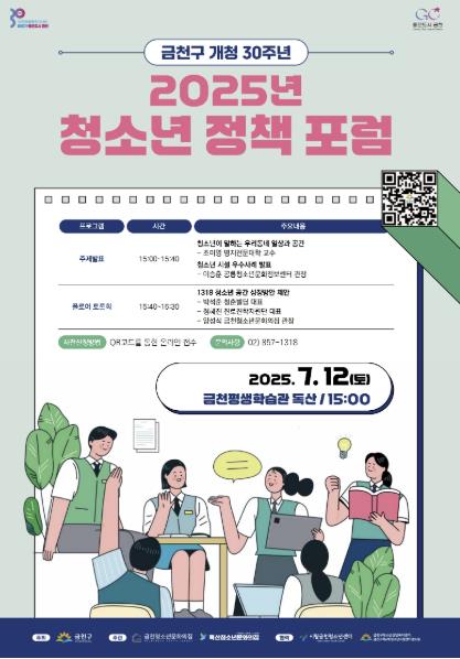 [파이낸셜경제=김예빈 기자] 금천구는 오는 7월 12일 15시, 금천평생학습관 독산에서 ‘2025 금천구 청소년 정책 포럼’을 개최한다고 밝혔다.