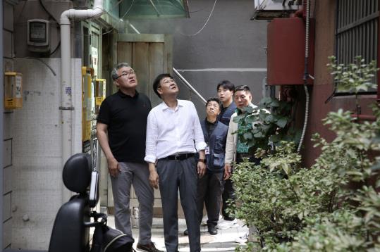 | ▲ 돈의동 쪽방 지역 점검에 나선 정문헌 종로구청장의 모습(2023년 8월) |