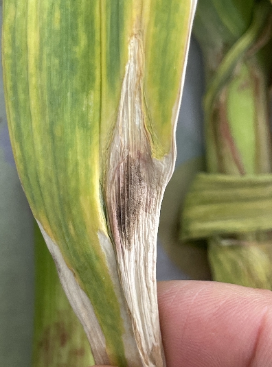 잎마름병은 잎에 회백색 작은 반점이 생기고, 이후 갈색의 길쭉한 병반으로 확대되는 것이 특징이다.