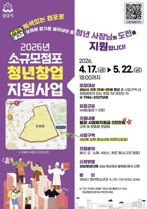 | ▲ 성남시 소규모 점포 청년창업 지원사업 참여 신청 안내 포스터 |