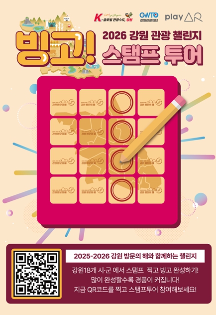 [파이낸셜경제=조성환 기자] 강원관광재단은 2026년 '강원 방문의 해' 사업의 일환으로 도내 전역을 아우르는 참여형 관광 프로그램‘강원 관광 빙고 챌린지’를 4월 9일부터 본격 운영한다고 밝혔다.