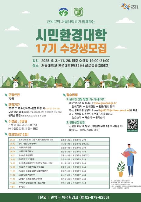 | ▲ 관악구 제17기 시민환경대학 홍보 포스터 |