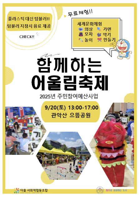 이번에 개최되는 다문화 체험 축제는 2025년도 관악구 주민참여예산 공모를 통해 기획되어 9월 한 달간 총 2회 진행될 예정이다.