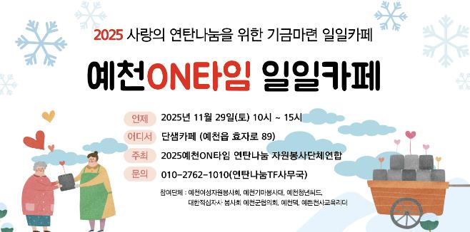 예천ON타임 자원봉사단체연합은 지난해 이어 올해도 겨울철 난방이 어려운 가정을 지원하고 지역 사회에 나눔 가치를 전파하고자 본행사를 준비했으며, 행사 수익금 전액으로 구매한 연탄을 올 연말 취약 계층 가정에 직접 배달할 예정이다.