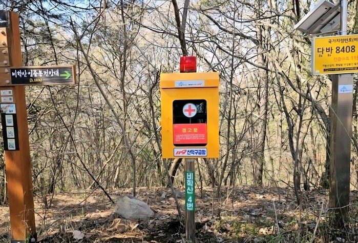 [파이낸셜경제=김영란 기자] 세종남부소방서가 봄철 산악사고 발생 시 시민의 신속한 응급처치를 돕기 위해 장군산과 비학산 주요 등산로에 119산악구급함 8개를 추가로 설치했다고 15일 밝혔다.