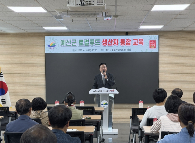 [파이낸셜경제=김영란 기자] 예산군은 지난 16일 농업기술센터 세미나실에서 로컬푸드 직매장 출하 농가 80여 명을 대상으로 2026년 로컬푸드 생산자 2분기 통합 교육을 실시했다.