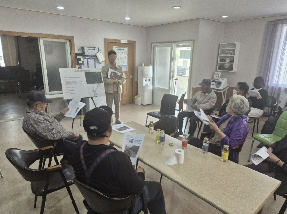 | ▲ 산불진화임도 조성 관련 아산1리 주민설명회 진행 사진 |