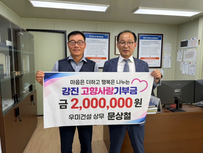 [파이낸셜경제=김예빈 기자] 문상철 우미건설 공사부 상무가 고향 강진을 향한 마음을 담아 고향사랑기부금 200만원을 기탁했다.