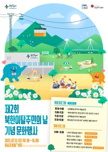 주요 프로그램은 ▲‘북한이탈주민 전남 정착 사진 공모전’ 시상식 ▲탈북 예술인 공연 ▲‘남북한 생활 엿보기’ 통일공감 토크콘서트 등이다.