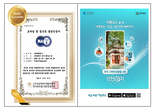 [파이낸셜경제=김기보 기자] 인천광역시(시장 유정복)는 스마트관광 플랫폼 ‘인천e지’ 앱(APP)이 관광약자를 배려한 서비스 구현의 우수성을 인정받아, ‘모바일 앱 접근성 품질인증(Mobile Accessibility)’을 3년 연속 획득했다고 밝혔다.