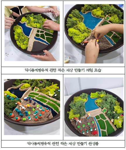이어 점토, 농작물 모형, 식물 등 다양한 재료를 활용해 자신만의 작은 세상을 만들며 직접 고대 농경사회를 표현하는 활동에 참여하게 된다.