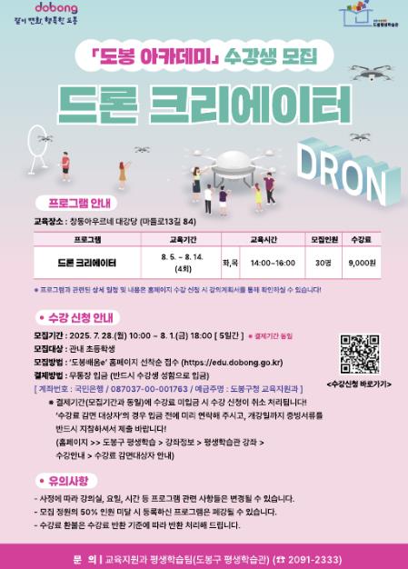 | ▲ 도봉구 드론 크리에이터 강좌 홍보 포스터 |
