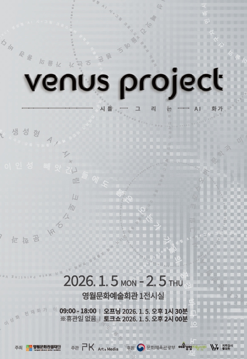 [파이낸셜경제=조성환 기자] (재)영월문화관광재단은 2026년 1월 5일부터 2월 5일까지 영월문화예술회관 제1전시실에서 생성형 AI 기반 디지털 시각예술전 'Venus Project'를 개최한다고 밝혔다.