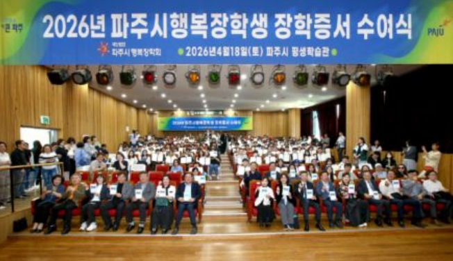 [파이낸셜경제=김기보 기자] 파주시는 (재)파주시행복장학회가 지난 18일 파주시 평생학습관 대공연장에서 학부모와 장학생 등 200여 명이 참석한 가운데 2026년 장학증서 수여식을 개최했다고 밝혔다.