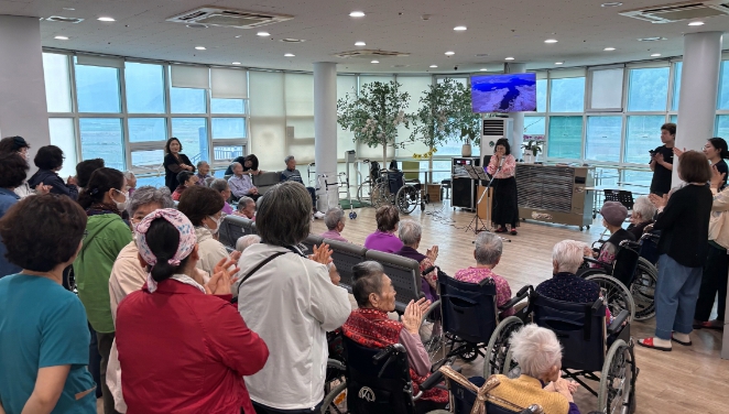 행사는 강영남 회원의 감미로운 오카리나 연주로 시작됐으며, 이어지는 회원들의 노래 공연으로 요양원 안은 오랜만에 웃음꽃과 활기로 가득 찼다.