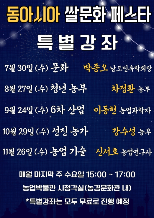 | ▲ 동아시아 쌀 문화 페스타 특별강좌 홍보물 |