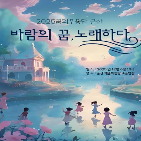 [파이낸셜경제=김예빈 기자] 군산시민예술촌이 준비한 ‘꿈의 무용단 군산’ 제3회 정기공연 '바람의 꿈, 노래하다'가 6일 오후 6시 군산예술의전당 소공연장에서 펼쳐진다.