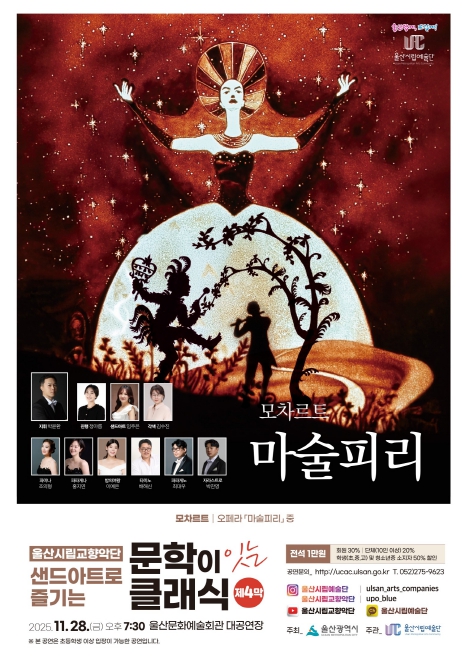 [파이낸셜경제=김예빈 기자] 울산시립교향악단이 11월 28일 오후 7시 30분 울산문화예술회관 대공연장에서 ‘샌드아트로 즐기는 문학이 잇는 클래식 제4막_마술피리’를 선보인다.