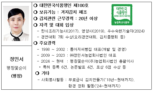 | ▲ 2025년 대한민국식품명인 프로필 |