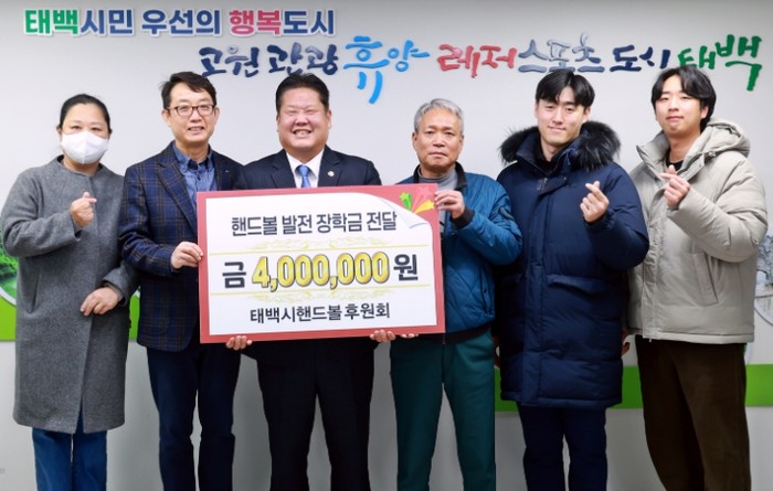 [파이낸셜경제=조성환 기자] 태백시는 태백시핸드볼후원회(회장 우병선)가 지역 핸드볼 꿈나무 육성을 위해 총 400만 원 규모의 핸드볼 발전 장학금을 관내 4개 학교(황지초등학교, 세연중학교, 황지정보산업고등학교, 철암고등학교)에 전달했다고 밝혔다.