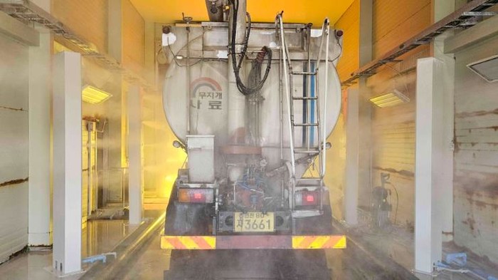| ▲ 축산차량 거점소독시설 소독 사진 |
