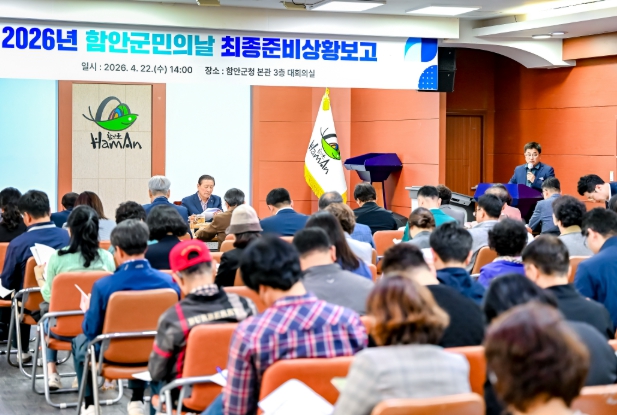 [파이낸셜경제=김예빈 기자] 함안군은 함안군민의 화합 대축제인 ‘2026년 함안군민의 날’ 행사가 오는 5월 1일부터 3일까지 3일간 함안공설운동장과 함주공원 일원에서 열리는 가운데, 행사의 성공적인 개최를 위한 ‘2026년 함안군민의 날 최종 준비상황 보고회’를 지난 22일 군청 3층 대회의실에서 개최했다고 밝혔다.